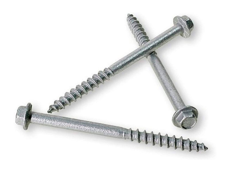 Structural screws have a hex head, do not need pre-drilling and work well with joist hangers. Available in a variety of lengths and sizes.